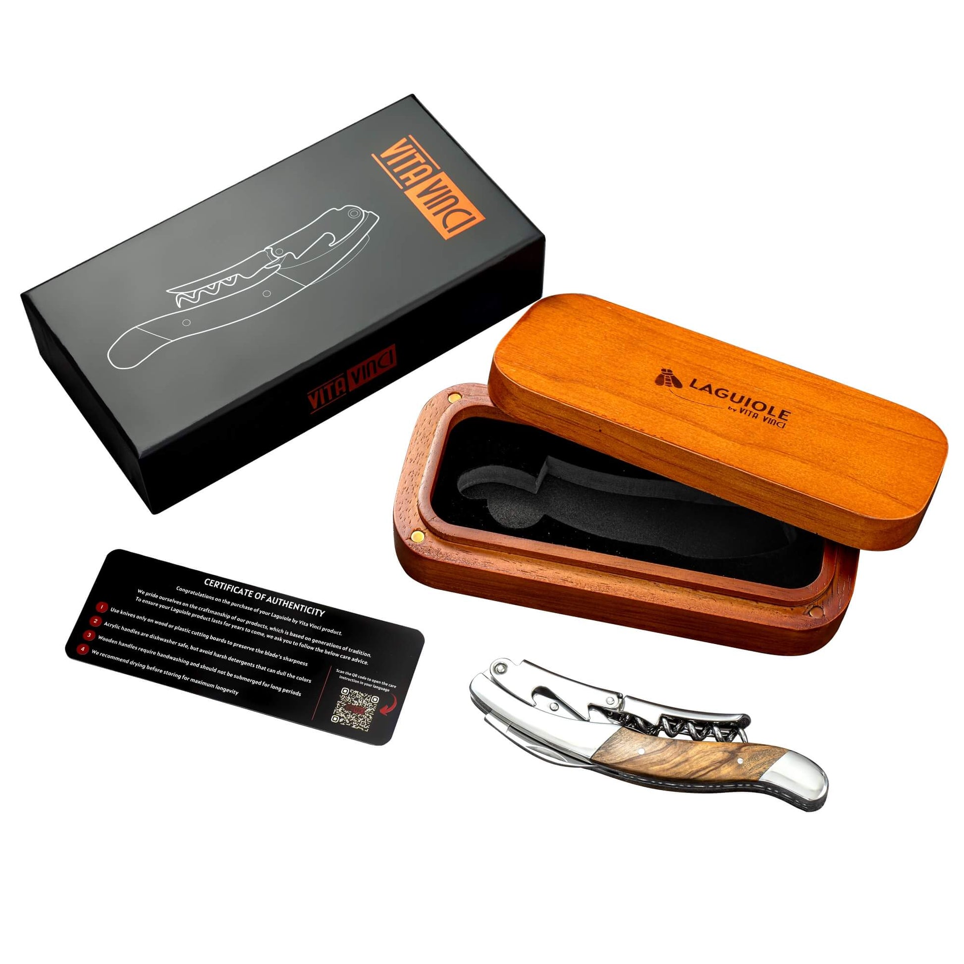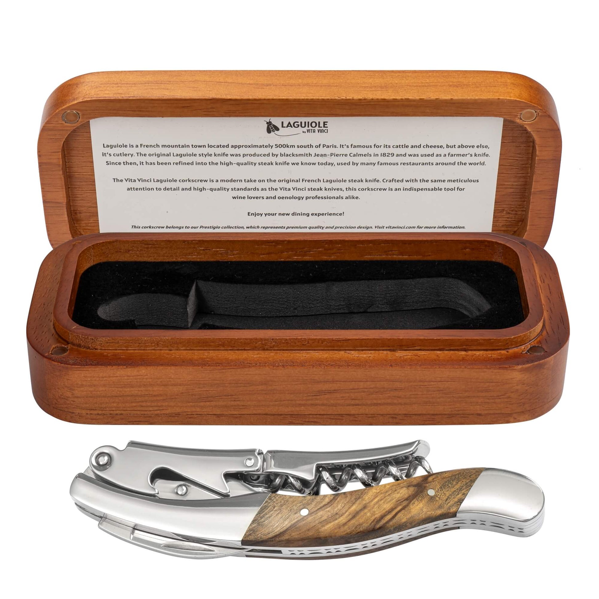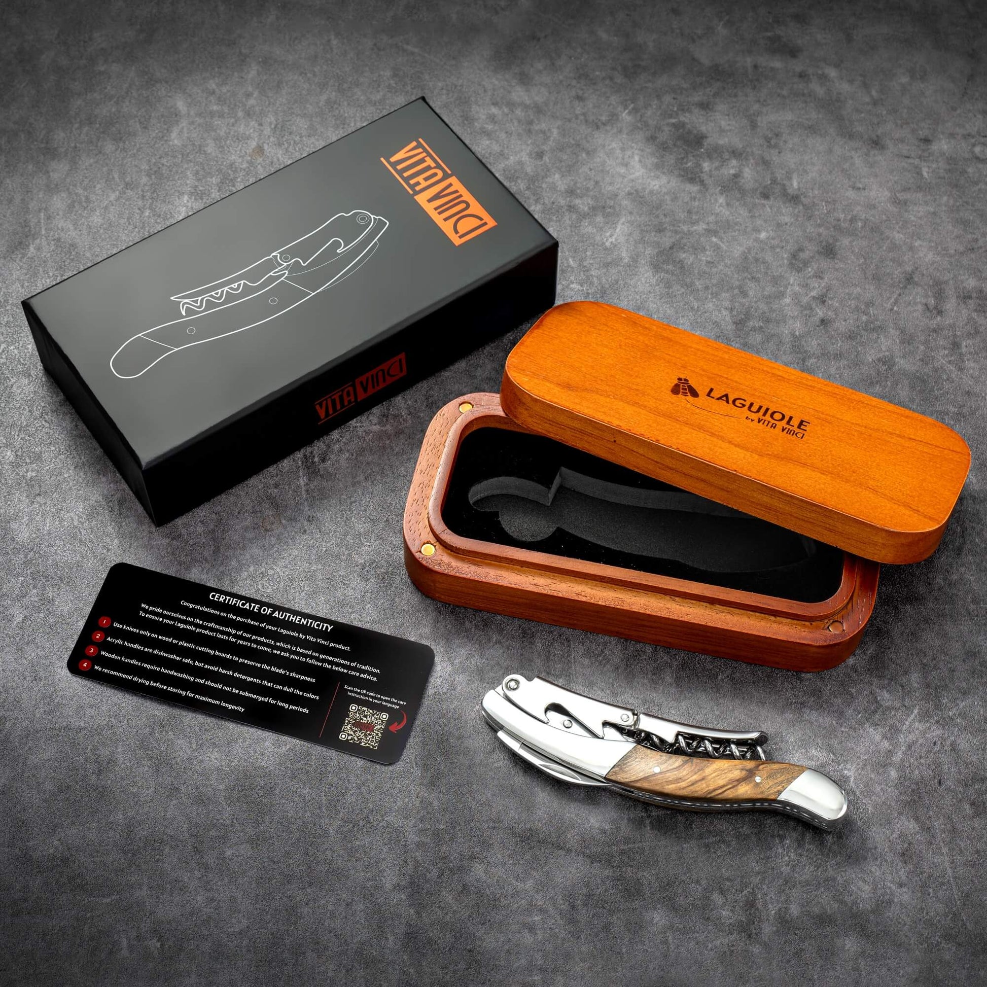 Vita Vinci Laguiole korkskruven är en modern tolkning av den ursprungliga franska Laguiole steakkniven, tillverkad med samma noggranna uppmärksamhet på detaljer och höga kvalitetsstandarder som Vita Vinci steakknivarna. Den är ett oumbärligt verktyg för vinälskare och yrkesverksamma inom oenologi.