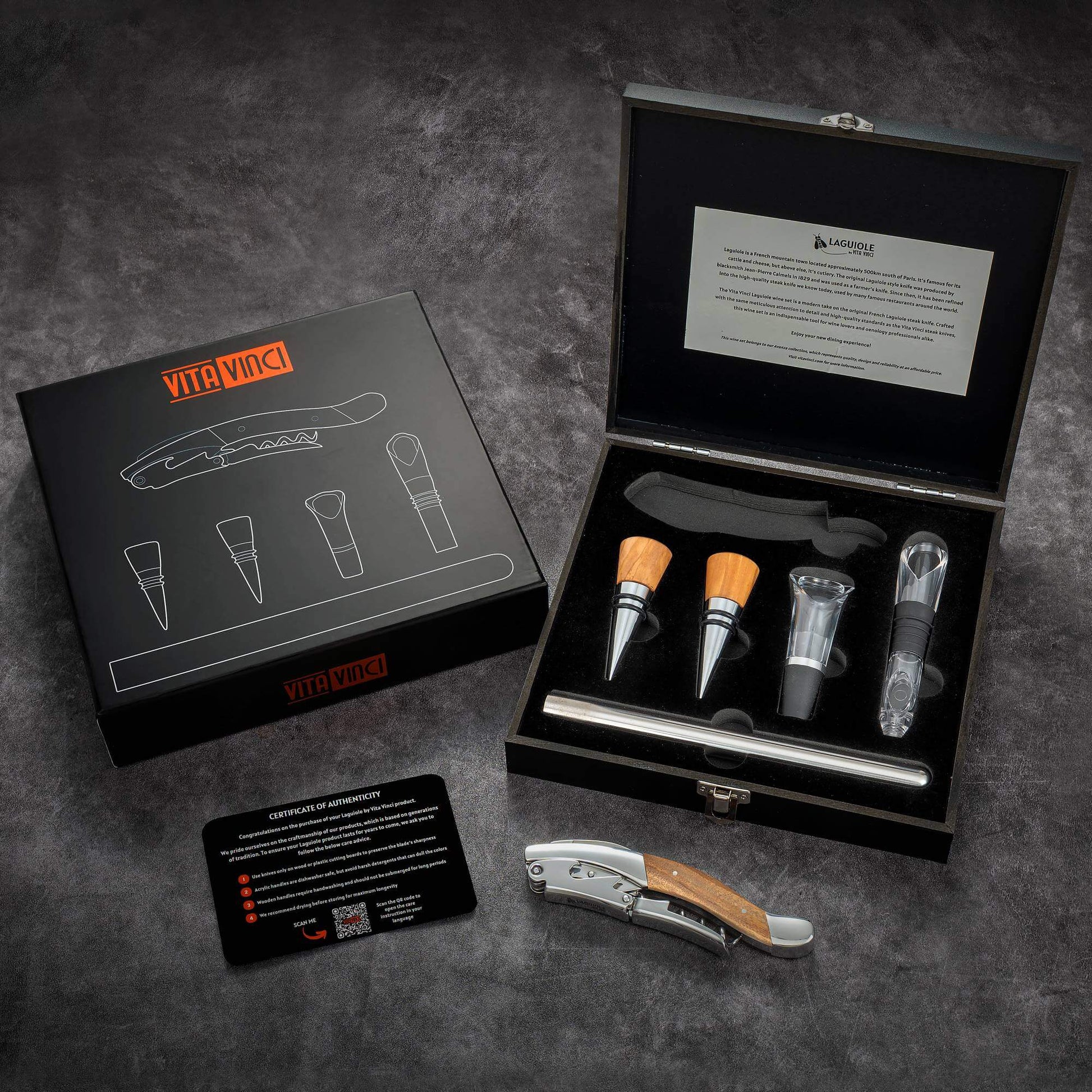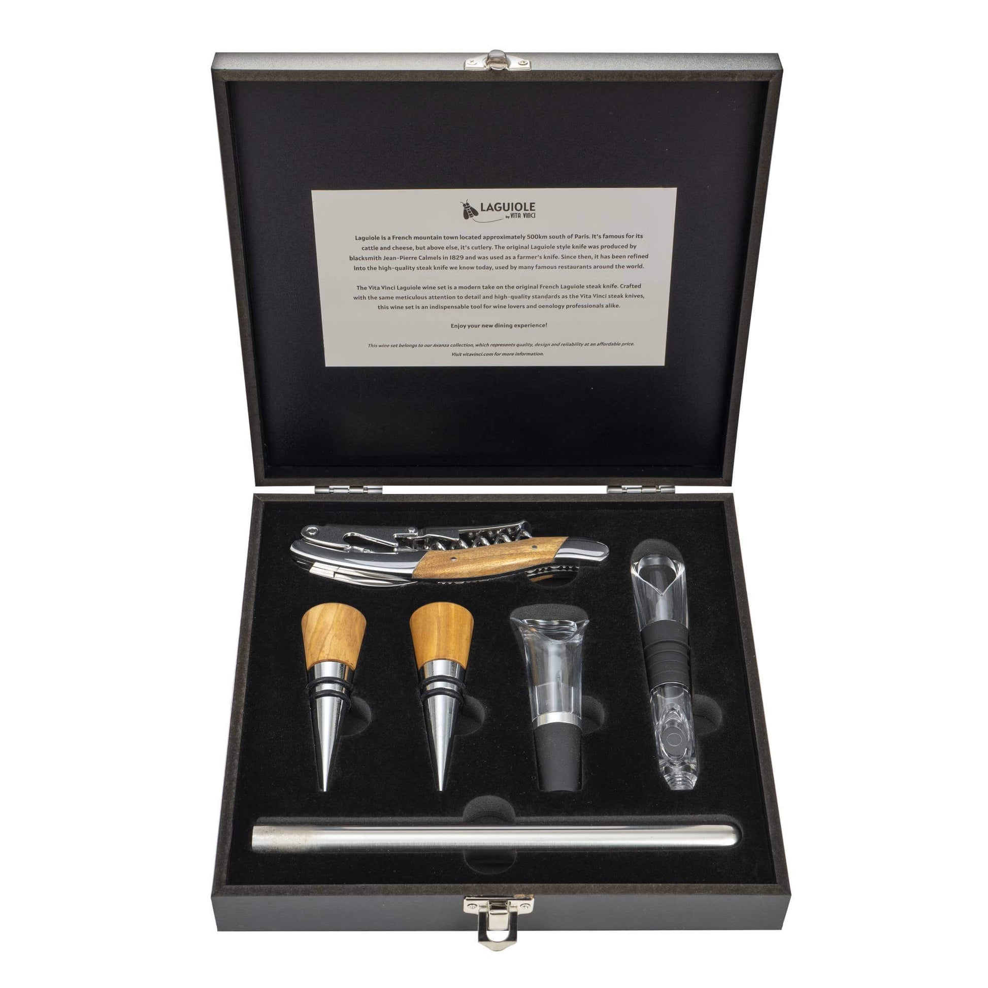 Vita Vinci Laguiole vinset är en modern tolkning av den ursprungliga franska Laguiole-kniven. Varje del i setet är tillverkad med samma noggranna uppmärksamhet på detaljer och höga kvalitetsstandarder som kännetecknar Vita Vinci steakknivarna. Detta vinset är ett oumbärligt verktyg för vinälskare och oenologer.